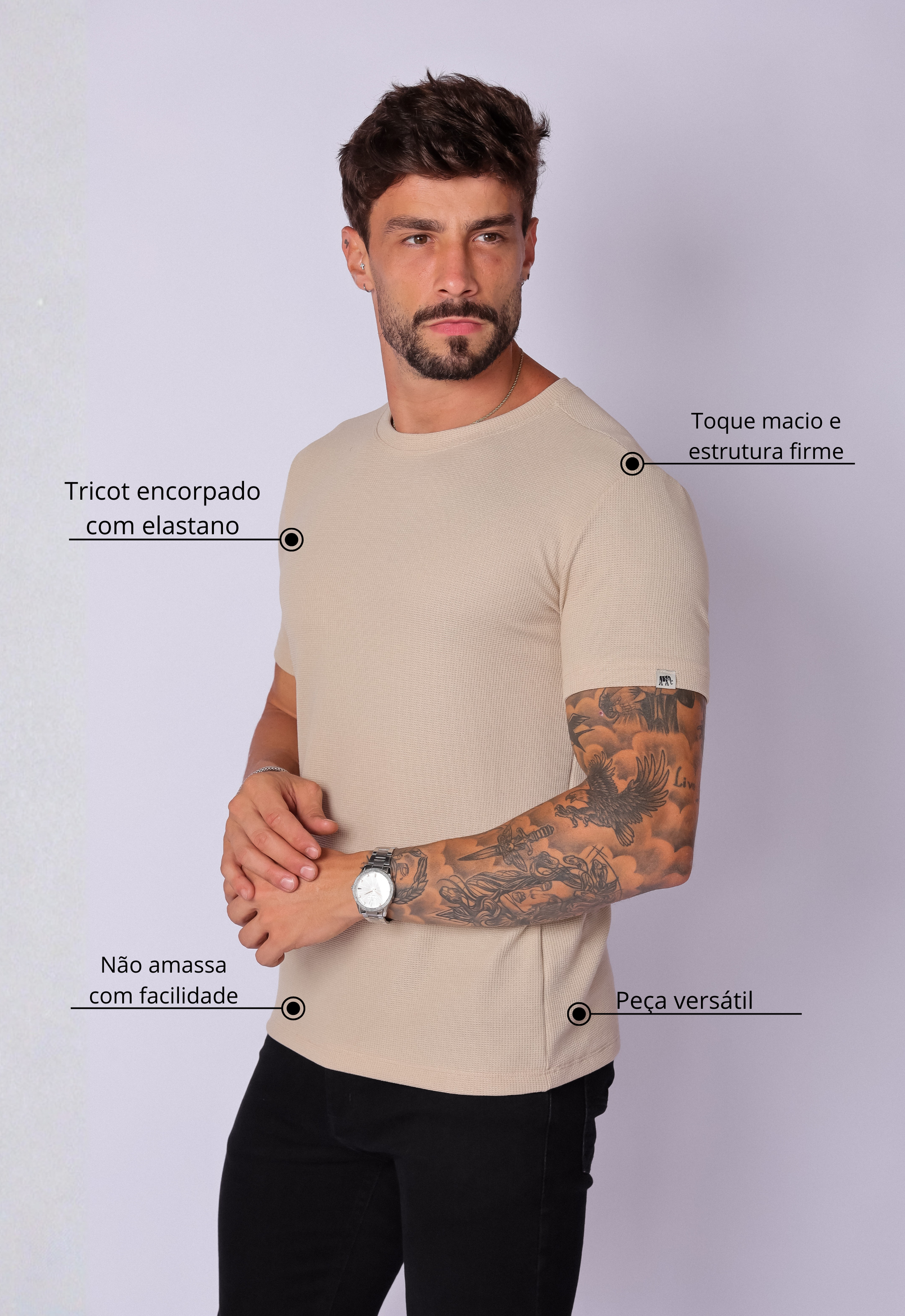 Uma peça clássica e versátil, Camiseta Masculina Tricot, ideal para quem busca estilo e conforto em qualquer ocasião. Esta camiseta em tricot, com modelagem slim, valoriza a silhueta e oferece um caimento moderno e ajustado. Seja para compor um look casual ou mais sofisticado, essa peça é indispensável no guarda-roupa masculino.