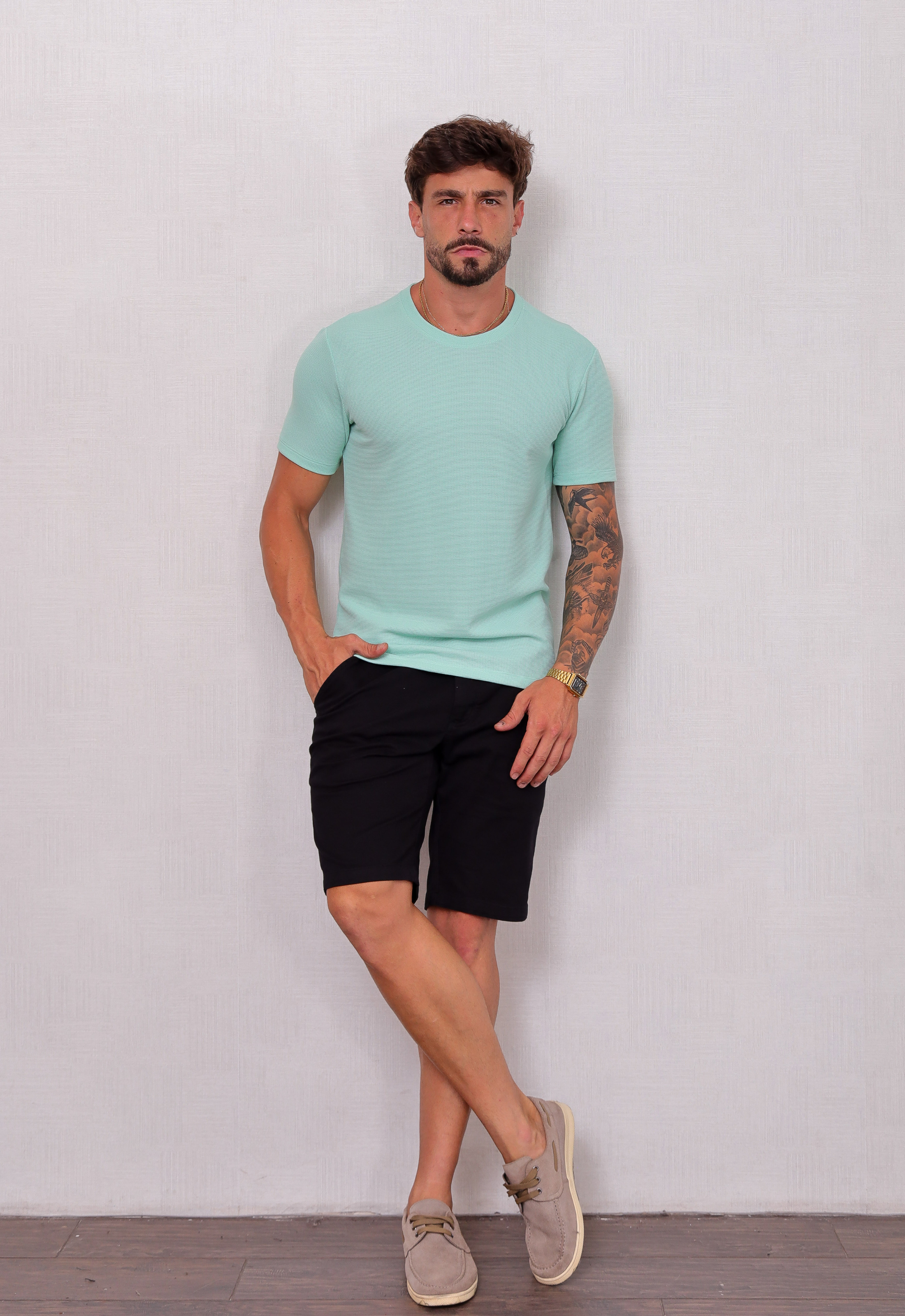 Uma peça clássica e versátil, Camiseta Masculina Tricot, ideal para quem busca estilo e conforto em qualquer ocasião. Esta camiseta em tricot, com modelagem slim, valoriza a silhueta e oferece um caimento moderno e ajustado. Seja para compor um look casual ou mais sofisticado, essa peça é indispensável no guarda-roupa masculino.